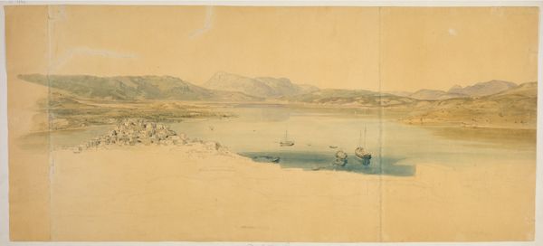 Edward Lear created this watercolor painting of Mount Olympus in Thessaly, Greece, using paper, watercolor and graphite. The hazy quality achieved with watercolor gives a sense of atmospheric perspective, and also speaks to the artist's technique. Lear worked en plein air, meaning he painted directly from nature. The immediacy of the medium – mixing pigment and water, then quickly applying it to paper – allowed him to capture fleeting moments of light and weather. You can almost feel the heat radiating from the landscape. Note how the graphite underdrawing peeks through in areas, showing Lear’s initial sketch. The ease and speed of working in watercolor allowed artists to produce studies and records of their experiences with efficiency. But it's important to remember that even a seemingly straightforward landscape is the result of careful selection and composition. Lear chose to depict this particular view, emphasizing the grandeur of Mount Olympus, and framing it with the figures in the foreground. This image is a product of both careful observation and artistic interpretation, reflecting both the artist’s skill and his personal vision.