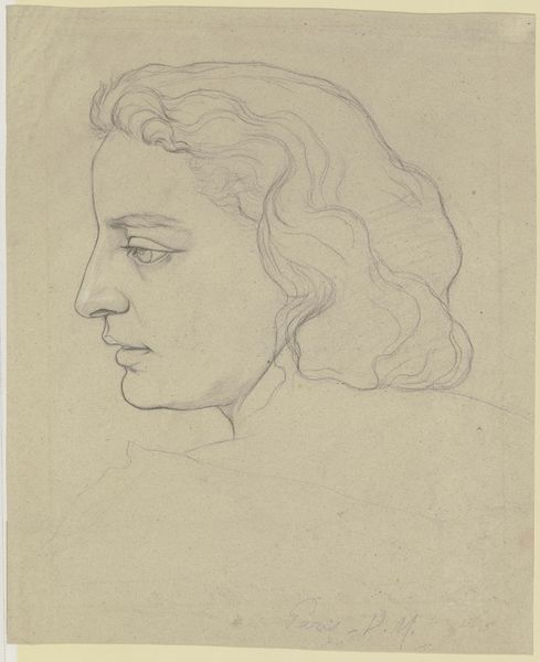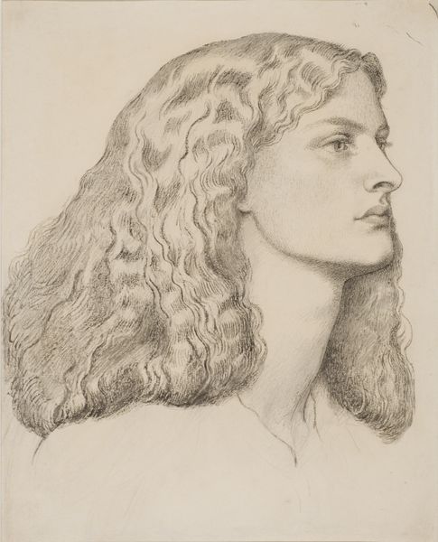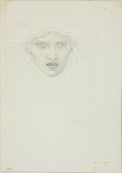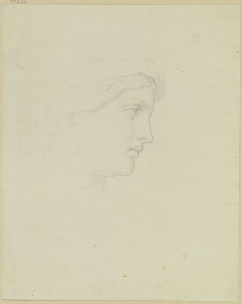 Edward Burne-Jones created this delicate head study in pencil on paper. The girl’s serene profile, softly rendered, is positioned against an ethereal, almost blank background. The composition, simple yet elegant, directs our gaze to the gentle contours of her face and the flowing lines of her hair. Burne-Jones’s approach to form is evident in the careful balance of light and shadow, creating a sense of depth despite the limited tonal range. The lines, mostly smooth and flowing, give shape to the girl's features. He captures the texture of her hair with finely drawn lines, emphasizing its volume and softness. The limited use of shading focuses attention on her facial expression which carries a reflective emotional quality. In its emphasis on beauty and idealized form, this drawing exemplifies the aesthetic principles of the Pre-Raphaelite movement. It encourages us to reflect on beauty, representation and our subjective response to it.