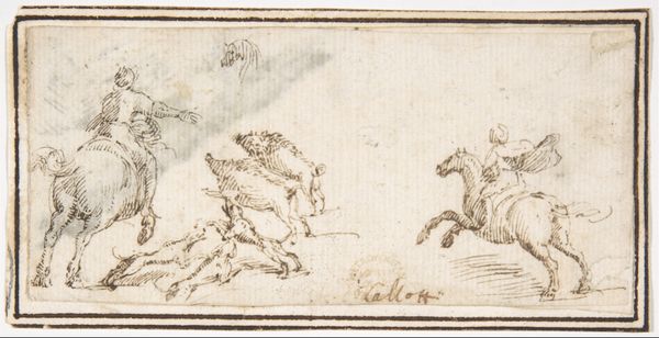 Luca Cambiaso created this pen and brown ink drawing, Apollo Driving the Chariot of the Rising Sun, in the 16th century, a period rife with artistic, scientific, and religious change. Cambiaso, an Italian painter working in the High Renaissance style, here depicts Apollo, the Greek god of light, driving his chariot across the sky to bring forth the dawn. Think about the power dynamics embedded within this scene; Apollo, the male god, controlling the horses, which represent raw, untamed energy, to bring light to the world. The very act of depicting a god in such a dynamic pose speaks to the Renaissance’s humanistic values that placed humans and their experiences at the center. Note how the artist focuses on movement and idealized forms rather than realistic details. The drawing captures a sense of energy and drama, but also hints at the societal values placed on control and order during the Renaissance, perhaps reflective of the artist’s own experiences. The dawn is not just a time, but a representation of power and control.
