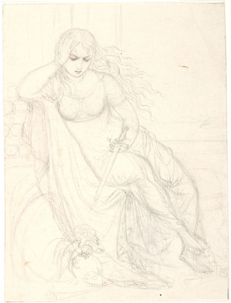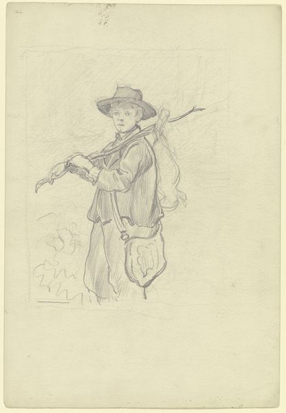 Leopold Pollak created this pencil drawing, "Hirtenknabe in der römischen Campagna," which translates to "Shepherd Boy in the Roman Campagna." Pollak, born in Bohemia in 1806, situates his subject within the romanticized and pastoral Italian countryside. We see a young boy, likely of working-class origins, his bare feet suggesting a life lived close to the land. His identity as a shepherd is almost theatrical. His clothing and instrument are a costume to be worn for the enjoyment of wealthy Europeans on their grand tours. Consider how Pollak's work flattens any real sense of the boy's identity. He is picturesque. This image emphasizes the cultural fascination with and exoticization of the rural working class. The drawing offers us a window into the complex interplay between identity, representation, and the romantic gaze.