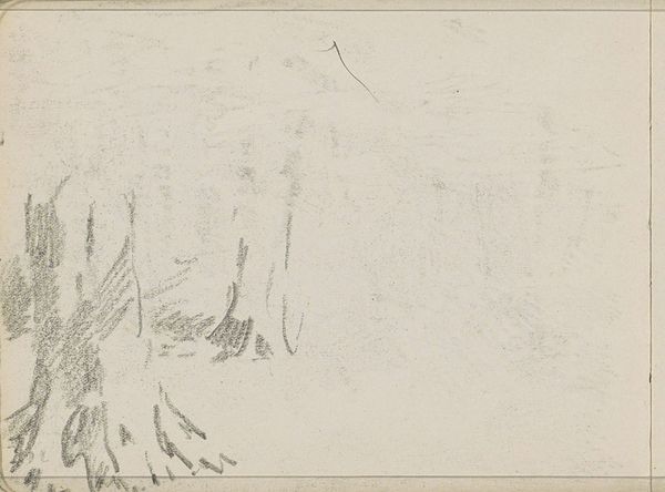 Editor: This is Anton Mauve's "Man uitkijkend over een vaart," a pencil drawing that was created sometime between 1848 and 1888. It feels incredibly sparse, almost unfinished. What strikes me most is the isolation of the figure. What do you see in this piece? Curator: That sense of isolation is key. Mauve, working within a rapidly industrializing Netherlands, captures a tension between the individual and the changing landscape. This drawing speaks to the socio-political climate of the late 19th century, where urbanization and modernization threatened traditional ways of life. The "vaart," or canal, isn't just a body of water; it's a symbol of commerce and industry encroaching on the natural world. Where does the man fit within this context? Is he part of it, or separate? Editor: He certainly looks separate, almost melancholic. Is that a common theme in art from this period? Curator: Absolutely. Think of the rise of Realism and Impressionism – artists were increasingly focused on depicting everyday life, including the anxieties and alienation brought about by social and economic upheaval. Mauve's sketch becomes a meditation on labor, class, and the individual's relationship to progress. Consider also how this image resonates with our contemporary moment, our relationship with technology, and the constant mediation between nature and industry. Does the scene echo present concerns about technology's dominance, climate change or urban expansion? Editor: I never thought about it that way. The loneliness really highlights the broader feeling of disconnect that's only become more amplified today. It's powerful how a simple sketch can be so relevant across time. Curator: Precisely. By examining the historical and social context, we can appreciate how Mauve's work speaks to the enduring human experience of displacement and change.
