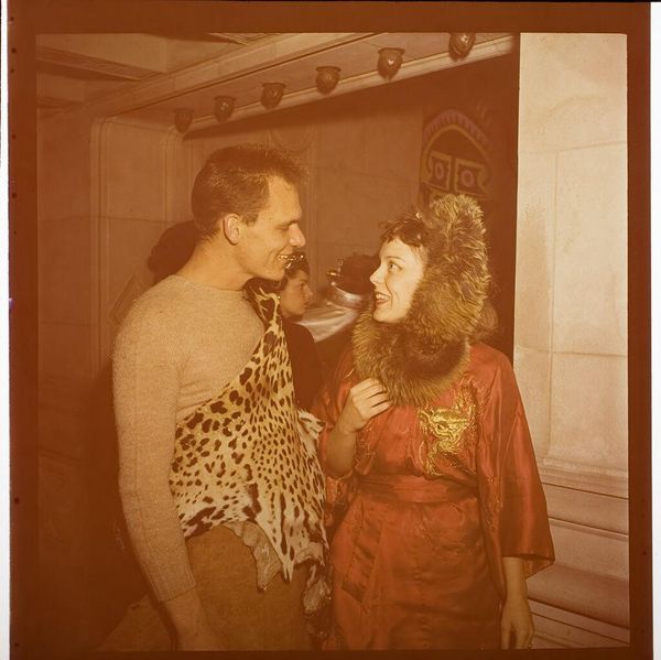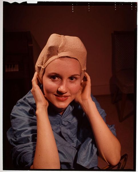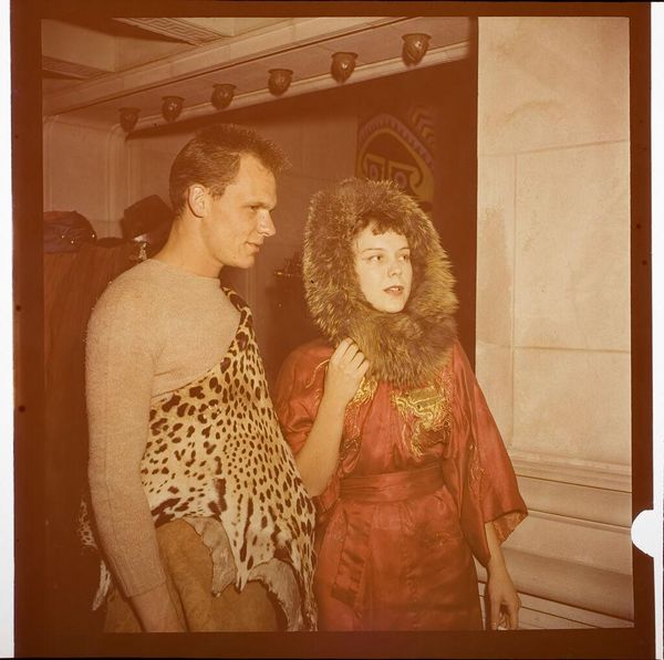 Curator: This photograph, simply titled "Untitled (man applying make-up to woman's face)," is by Jack Gould. It's a small, intimate glimpse, isn't it? Editor: Absolutely. My initial feeling is one of quiet tension, a performative vulnerability. The woman’s expression is so interesting—a mix of anticipation and perhaps…resignation? Curator: I see it. And the dynamic itself is fascinating. The act of applying makeup, typically gendered, is here being performed by a man. How does that shift our understanding? Editor: Precisely. It complicates the narrative. Is this a moment of empowerment, where the woman’s image is being carefully crafted? Or does it represent a loss of agency, conforming to societal beauty standards? The photograph opens up many crucial conversations about identity, gender, and power dynamics. Curator: It makes me think about the masks we wear, both literally and figuratively. The intimacy implied is beautiful, yet the purpose is a transformation, a change. Editor: True. This small image holds such a complex web of ideas. I appreciate how Gould captures a moment that is both personal and deeply political.