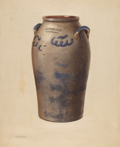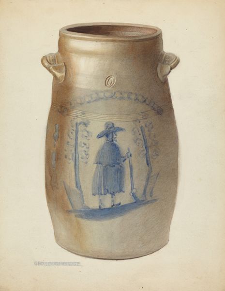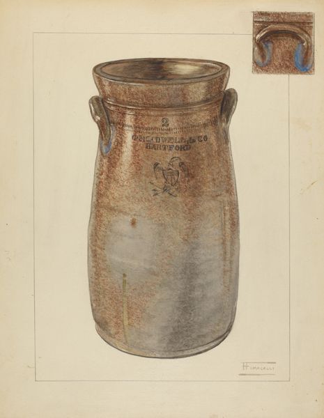 Frank Fumagalli made this watercolour of a churn, sometime before he died in 1995. It's how he saw the world. Look at the way he's layered his colours, not trying to imitate the object so much as find a correspondence in his medium. It reminds me of Morandi, a similar interest in shape and hue. There's something about the way Fumagalli’s put the blue on the bottom, bleeding into the brown, which gives it weight. Like he's imagining the cool depths of the milk as it separates. The symmetry of the churn, its smooth, cool surface, the subtle shifts in tone: it’s all very satisfying. It's a quiet, meditative study of everyday life. There's no attempt to make this churn pretty or impressive, it just *is.* And in that simplicity, there's a kind of beauty.