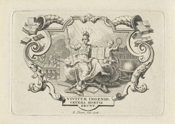 Bernard Picart created this print, Vignet met Minerva en Amor, in 1718. In this vignette, Picart presents Minerva, the Roman goddess of wisdom, arts, trade, and strategy. The piece reflects the intellectual and cultural values of the Enlightenment. The era placed great emphasis on reason and knowledge, central to Minerva’s representation. Note how Minerva is adorned with symbols of authority and intellect, such as the helmet, spear, and book. She’s literally trampling death. It seems that the artist suggests knowledge and wisdom can overcome mortality itself. Flanking her we see Cupid, the god of love, and putti, all figures that underscore the breadth of human intellect and the value of the classical world. This vignette suggests that the pursuit of knowledge and understanding is an essential and life-affirming endeavor. As you consider this image, think about the role of knowledge and intellect. What does it mean to pursue them and what can they help us overcome?