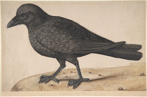 Curator: Today, we're looking at John James Audubon's "English Black Cocks," a watercolor and drawing dating back to 1828. Editor: It has this subdued and gentle color palette that strikes me instantly. And these fowl…their textures are incredibly rendered. The plumage is so lifelike. There’s also something still, almost melancholic, about this depiction. Curator: Well, Audubon dedicated his life to documenting birds in their natural habitats, and he did this systematically, fueled by a then-burgeoning public interest in natural history. His work sits at the intersection of science, art, and also the socio-economic changes impacting America at the time, with westward expansion threatening numerous species. Editor: That context is key. It’s difficult to view an image like this without thinking about ecological destruction and the power dynamics implicit in observing and cataloging the natural world. Are we meant to appreciate these birds or see them as commodities? Also, is it really "English" if the birds appear to be painted within a North American landscape? What’s with the colonial gaze here? Curator: The “English” probably indicates a specific breed. Audubon was deeply invested in scientific accuracy but that ambition was inevitably influenced by the prevailing attitudes and methodologies of his time. Remember that he actually shot the birds himself to get the perfect pose and perspective to better draw their anatomy, which some found problematic back then, too. Editor: Problematic then, profoundly so now! I appreciate the anatomical detail, I do, but there's also something troubling about the idea of a man killing animals for the sake of documentation and display, especially when presented as objective science, isn't it? What does this tell us about the culture producing, consuming and benefiting from such images? Curator: Indeed, that paradox is embedded in the very act of capturing nature through art. And to Audubon's credit, the scale of his project and its sheer ambition was ultimately rooted in wanting people to be more attuned to biodiversity so people protect natural resources. Editor: And now, viewed through our modern lens, maybe Audubon’s work becomes more than just documentation. Maybe it is now a sort of memorial to a disappearing world and prompts reflections about human responsibility and how intertwined culture is with environmental changes. Curator: Precisely. And hopefully spurs ongoing conversations about our place within the natural world.