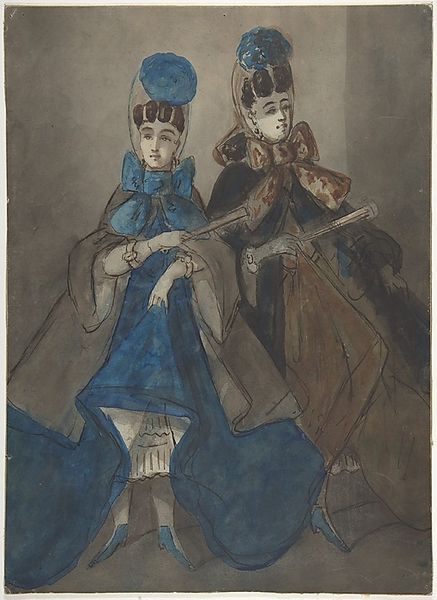 Curator: This intriguing watercolor and charcoal drawing is titled “Unidentified scene, from Hamlet or Macbeth,” attributed to Edwin Austin Abbey. It is full of mystery. Editor: Absolutely. The figures seem to emerge from the very fibres of the paper. The execution—the stark contrasts—creates an atmosphere of high drama and a palpable sense of unease. Curator: Note how Abbey's economical application of washes allows the paper itself to participate actively. The limited palette accentuates the theatrical tension. It appears Abbey focused intently on the relationship between figure and ground, dissolving the background into a tonal field. The medium becomes the message. Editor: I'm especially struck by the tactile quality of the materials—the rough grain of the paper is visible beneath the washes. This hints at the specific economic conditions surrounding the production of paper itself. Abbey's decision to use cheaper or more readily available papers directly affects the accessibility of his art, both materially and metaphorically. Also, look at the draping of the clothing—there are significant hours of labour invested here! Curator: An insightful observation! Considering this choice of medium, coupled with a focus on a Shakespearean subject, invites reflection on the notion of the artist's "hand," their virtuosity, and the weight of art historical tradition. One might ask, does this piece deconstruct established methods and concepts, or does it further reinforce historical precedence? Editor: Or, conversely, think of the physical act of its making. This wasn't effortless! Abbey had to source charcoal, grind pigment, and spend numerous hours on the production of a history scene. This materiality is something far removed from ethereal philosophical discourse. Curator: Very compelling, the weight and labor against what many perceive as "mere aesthetics". Editor: I find these aspects integral to a complete assessment of Abbey's process here. Thank you for prompting a discussion beyond pure optics. Curator: And thank you for broadening my perspective.