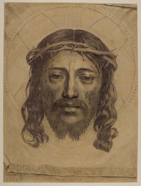 Claude Mellan's tour de force is one of the great achievements of printmaking. The entire print consists of a single engraved line. To begin, Mellan placed the point of his burin at the center of Christ's nose and spiraled outward, swelling and tapering the line as needed to create this celebrated curiosity. His seemingly miraculous feat mirrors the very image it represents-the imprint of Christ's face on Saint Veronica's cloth, or sudarium. The inscription, which reads, "It is formed by one and no other," alludes both to the power of the divine and to the virtuosity of Mellan's masterful hand.