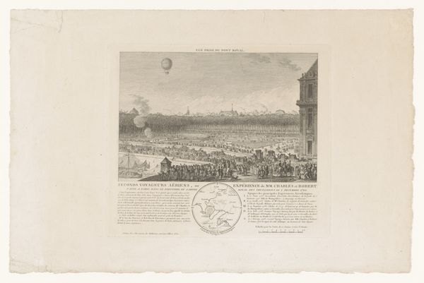 This print, "Gevecht bij de Puerta del Carmen te Zaragoza," was made by Juan Galvez, and it shows a battle scene in monochrome. This detailed image, likely an etching or engraving, relies on line work to create areas of light and shadow. The process of printmaking is crucial to understanding its meaning. Unlike a painting, prints can be reproduced, making images widely accessible. This one depicts a fierce battle, complete with cannons and soldiers locked in combat. The artist has carefully rendered the figures and the smoke of battle. Printmaking itself has always been tied to wider social issues of labor, politics, and consumption. Consider the labor involved in creating the original plate, and then printing multiple copies. This print likely served a political purpose, disseminating information about the conflict to a broad audience, and is indicative of the rise of nationalism and the print media. Paying attention to the materials, processes, and context helps us to understand the full meaning of this artwork, challenging traditional distinctions between fine art and craft.