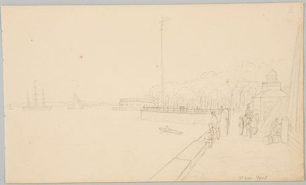Curator: This is "The City from Greenwich Village," a drawing dating back to around 1922 by John Sloan. It appears to be rendered in pencil, possibly with some watercolor washes, on toned paper. Editor: You know, the first thing that hits me is this feeling of ephemerality. It's like capturing a fleeting thought, a dream of a city rather than a solid, concrete thing. The light pencil work makes everything seem delicate. Curator: Indeed. Sloan, deeply engaged with the urban fabric, particularly in New York, often documented daily life. Greenwich Village in the early 20th century was a hotbed of artistic and political ferment, so this drawing might be viewed as Sloan reflecting that energy through the city’s architectural form. Editor: I see that energy. It feels more like a memory of a city, or maybe even the idea of a city rather than an attempt to portray it accurately. The buildings feel almost like they are growing out of the earth, not quite solid. I’m sort of reminded of stage set designs, as if any minute now it could all get packed up and taken to the next theatre for the next performance. Curator: That reading aligns with Sloan's Ashcan School affiliations. He wasn’t after pristine renderings, but after capturing something of the raw urban experience. You notice that towering building almost in the center? Its somewhat awkward and abstracted placement is probably not random, because Sloan cared deeply for social observation through composition. The city’s burgeoning density shaped experiences for everyday life in all levels of society, not only for the very poor. Editor: True, there’s this wonderful looseness, an almost dreamlike quality. I find myself thinking about how cities grow and change, like sketches constantly being revised and erased. Looking at those smudges and tentative lines I wonder how cities appear to their long term dwellers. Perhaps blurry with the past, with outlines more visible than others? I wonder what it would feel like to dwell in that particular landscape. Curator: Considering Sloan's political commitments, his socialist beliefs, it’s also possible to interpret this drawing as his statement about urbanization. How new forms changed the face of the community is probably something he thought of daily. We tend to overlook it but drawing was the primary source of journalistic visual commentary back then. It's probably worthwhile exploring this in later discussions. Editor: Absolutely. For me, it’s a poignant reminder of the transient nature of our surroundings and the enduring power of an artist's gaze to transform reality. The image, rather unfinished and sketch-like as it is, lingers in my mind.