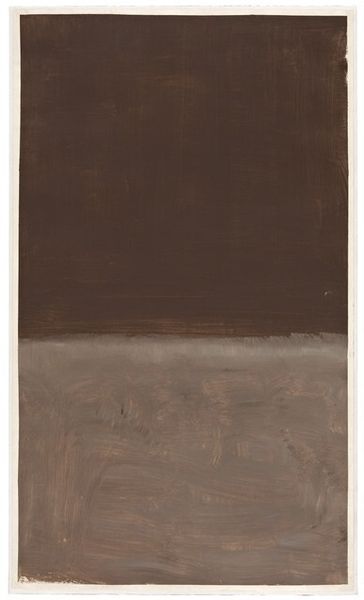 This painting in brown and gray, one of Rothko's so-called 'multiforms,' is made with oil paint. Look at the top section, how the brushstrokes seem to be heading in different directions. You can almost feel Rothko’s hand moving across the canvas. Up close, you can see the texture of the paint, thick in some areas and thin in others. Rothko’s choice of color is also interesting here – the somber browns and grays create a sense of depth and complexity. I love the contrast between the darker top section and the lighter bottom section. It's like two different worlds colliding on the canvas. Notice how the paint is applied in layers, almost like he was building up the colors over time. This piece reminds me a little bit of Ad Reinhardt’s black paintings, in the sense that both artists were pushing the limits of what painting could be, and embracing ambiguity. With Rothko, it’s less about a fixed image and more about a feeling, an atmosphere, that lingers long after you’ve walked away.