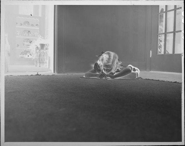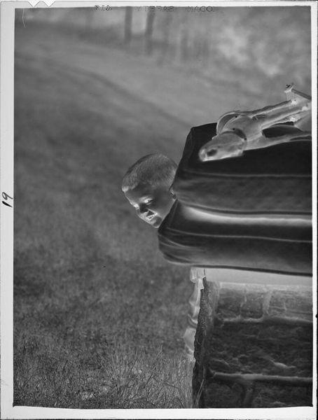 Curator: This is a photographic print, Untitled (little boy playing outside), by Lucian and Mary Brown. It's part of the Harvard Art Museums collection. Editor: It's an intimate snapshot, capturing the boundless energy of youth. The stark black and white gives it a timeless quality. Curator: Given the likely period, such images, even informal ones, played a role in shaping perceptions of childhood innocence. The Browns, though relatively unknown, contribute to our visual history. Editor: The boy's inverted pose, head down, speaks volumes. Inverted postures often symbolize vulnerability, but here, it feels more like play, a child exploring the world from a different angle. Curator: Exactly. And it encourages us to consider the broader context. How were children viewed? How did they occupy public spaces? These images are artifacts of social history. Editor: Perhaps, but at its core, this image is about the universality of childhood, a shared human experience that transcends time. It reminds me of freedom and play. Curator: Agreed. Ultimately, its strength lies in that potent tension between the specific and the universal, the personal and the political. Editor: Indeed. A single image can hold a multitude of meanings, shaped by our individual experiences and cultural lenses.