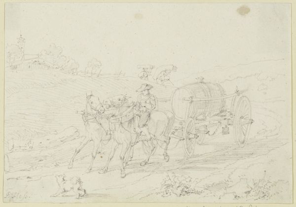 Curator: What an interesting drawing, no? It depicts the Siege of a Castle, by Franz Pforr. Editor: There’s an ephemeral quality to this pencil drawing; so faint it feels like it could vanish with a breath. You can almost feel the graphite against the paper and consider the pressure exerted by the artist's hand. Curator: Yes, the fragility echoes the nature of sieges, where fortunes turn on a thread. Notice how the castle looming in the background – the apex of power, defense, and social structure – becomes a mere symbol against the implied onslaught. What does it say about the psychology of conflict? Editor: And what kind of pencil did he use to achieve this? The grain of the paper is quite visible. I imagine Pforr had a very specific quality of materials in mind as he brought his mental image into reality. I mean, think about the labour behind creating each of the tiny metal or lead parts comprising the tools of the draughtsman! Curator: The composition, too, is key; that looming castle suggests not just physical strength, but also an established order. In terms of symbolism, consider the implications of its height and presumed inaccessibility against the dynamic movement on the ground. Editor: This leads me to wonder more about his process and whether he built his drawing through iterative layers, adding graphite gradually as opposed to bold definite lines, in keeping with a style which has become the hallmark of the Renaissance. Curator: The rendering almost seems to evoke the anxieties of societal disruption inherent to the Renaissance era—questioning authority, the destabilizing shifts in knowledge and power. It brings forth contemplations on human action against enduring, unchanging structures. Editor: For me, it is a study in tonal possibility, achieved with very simple, grounded materials. It encourages contemplation regarding the physical means which lead to great expressive capability, Curator: Agreed; it provides such subtle commentaries on a period marked by immense upheavals. Editor: Yes, a poignant testament in pencil and paper.