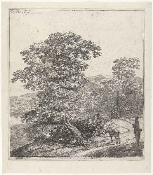 Herman Saftleven created this etching of a panoramic landscape, featuring a river and a distinctive double-trunked tree in the foreground, sometime in the 17th century. The image reflects the growing interest in landscape as a subject in its own right during the Dutch Golden Age. Before this period, landscapes were usually backdrops for historical or religious scenes. Here, however, the landscape takes center stage. Consider the cultural context: the Netherlands was a burgeoning economic power, with a strong merchant class and a growing sense of national identity. Artists like Saftleven responded to this environment by creating detailed and realistic depictions of the Dutch countryside. These images served not only as aesthetic objects but also as symbols of national pride and prosperity. To understand this work fully, one might research the economic and social history of the 17th-century Netherlands. The history of Dutch landscape painting and the influence of artistic guilds can provide a richer understanding of this image and its context.