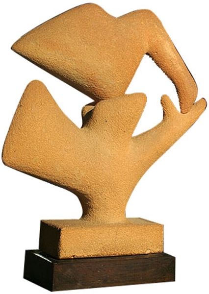 Editor: This is "Sea Butterfly," a sculpture by Agustin Cardenas, created in 1984. It’s certainly eye-catching, a very organic and flowing shape. How might its creation relate to the cultural context of the 1980s, or perhaps Cardenas's own background? Curator: It's a valid starting point to view this through the lens of cultural history. Consider Cardenas's Cuban heritage and the globalized art world of the 1980s. How do you see the dialogue between these aspects and the abstract form itself? Editor: Well, the title implies a connection to nature, despite its abstract appearance, but I'm not sure I can tie that to a cultural or historical context. Is there a statement Cardenas might have been making? Curator: Precisely! The very notion of an artist from Cuba working within a modernist framework implies a negotiation with Western art traditions, especially the dominance of American abstract expressionism. Cardenas spent formative time in Paris. Do you see a distinctly Latin American sensibility challenging the norms of modernist sculpture? How might that challenge be evident in the geometric shapes he uses here? Editor: I think the tension lies in its biomorphism—how he softens the geometric with organic curves, suggesting growth and life, maybe subverting cold, hard modernism. The name helps. Curator: An astute observation. And where does that place it within the global art market of the time? To whom was he speaking and what did that mean? Editor: It speaks to the dialogue between modernism and individual cultural identity within a shifting art world. I guess I hadn’t fully grasped the statement it makes on its own. Thanks for making me look at this in context! Curator: It's all about placing art within its intricate web of influences and intentions. That is, in fact, the most enriching way to learn.