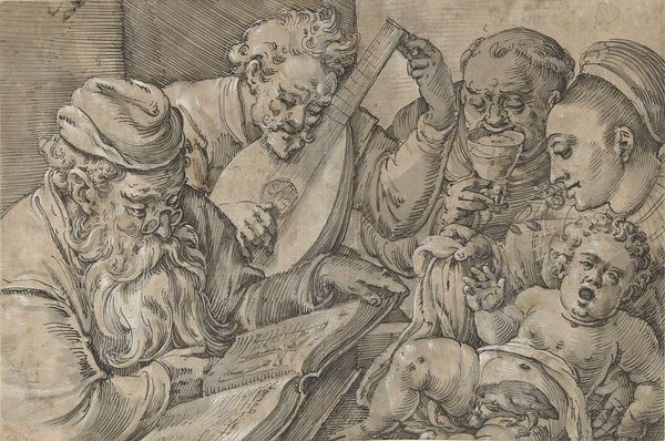Editor: So here we have "The Philosophers Heraclitus and Democritus with a Globe" by Bartholomeus Willemsz. Dolendo, sometime between 1589 and 1626. It's currently in the Rijksmuseum. I'm struck by the contrast in their expressions – one grinning widely, the other looking rather glum. How do you interpret this work? Curator: This print offers a fascinating glimpse into the visual culture of its time and the role that images played in shaping public perceptions of philosophical ideas. The stark contrast in the figures' expressions immediately invites us to consider how the artist is positioning these two figures. Heraclitus, weeping, and Democritus, laughing, were commonly used to represent contrasting views of the world. It seems this contrast provided a visually accessible means to engage with complex philosophical concepts for a broader audience. Do you notice the globe? Editor: Yes, they both have their hands on it. What does it symbolize here? Curator: In the context of the period, a globe often represented worldly knowledge and human understanding. The contrasting emotions suggest divergent responses to this knowledge. Perhaps, the artist critiques the very nature of knowledge production and its accessibility. Do you see anything else noteworthy about how the philosophers are presented, considering their social roles? Editor: Well, they are both wearing similar hats and clothing, and look…common. They’re not idealized at all. It is an accessible view of philosophy, a sort of democratizing image. Curator: Precisely. The artist has positioned philosophy as a subject of public discussion rather than confined to elite intellectual circles, making these great thinkers relatable to the everyday observer. Editor: I see! It’s fascinating how an image can reflect such complex societal attitudes. Thanks! Curator: Indeed! And that’s why analyzing art within its historical context allows us to uncover its role in shaping cultural values and societal discourse. A truly enriching conversation!