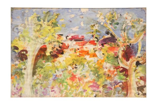 Curator: Jacek Malczewski painted this oil on canvas landscape, entitled "Summer Landscape," sometime between 1903 and 1907. Editor: I'm immediately struck by the riot of color and the way it captures a fleeting impression, that momentary quality is quite engaging. Curator: Malczewski masterfully translates plein-air painting through the lens of Post-Impressionism. You notice the composition, built on the rough brushstrokes? The garden imagery could represent Eden. His paintings contain repeated use of garden imagery, particularly in scenes depicting memory. The entire history of art can be contained in a single, symbolic apple. Editor: The interplay of light and shadow seems equally significant. Observe how light almost dissolves form, giving the whole a luminous, ethereal quality, contrasting in tonality through juxtaposition to enhance this feeling. It’s as if Malczewski wasn't just depicting a place, but also capturing the feeling of summer's heat haze. The white picket fence in the middle seems less a physical barrier and more a symbolic border, the boundary between what’s close and what is further away from reach, the tension that arises between inner worlds. Curator: That symbolic reading opens the scene to multiple layers of interpretation. Fences as borderlines or crossings! Malczewski was a central figure of Polish Symbolism. Every object, every colour vibrates with coded emotion that echoes across cultural memory and personal experience, a yearning for lost Arcadias, something just out of reach... Editor: Exactly, the rough application gives such an impression. You know, sometimes the art hides beneath layers. What is left unsaid may matter the most. Curator: Yes, as cultural memory is evoked, individual interpretations resonate deeply, shaped by collective human experience. A symbol can offer so much freedom. Editor: Precisely. Malczewski has constructed something that exists as much in the mind as on the canvas. I may now understand Malczewski’s perspective better, with new respect for what he sought to transmit, his particular style now fully absorbed in my own thoughts on nature.