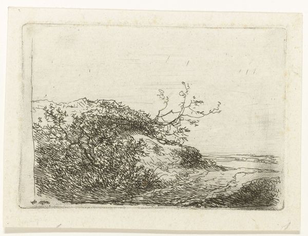 Arnoud Schaepkens created this waterscape with etching around the 19th century. The composition arranges a quaint countryside scene into a series of horizontal layers. This creates a sense of depth that draws the eye from the foreground toward a distant horizon. The subtle tonal gradations achieved through etching define the landscape. They delicately transition from the darker, denser textures of the vegetation and architecture, to the lighter, more diffuse areas of the sky. The windmill, strategically placed on the left, serves as a focal point, its verticality contrasting with the horizontal spread of the land. The etching technique captures the quiet stillness of the scene. This is enhanced by the presence of a small boat. As you consider this work, notice how Schaepkens uses the formal elements of line and texture to create not just an image, but a serene visual experience that speaks to the interplay between nature and human presence.