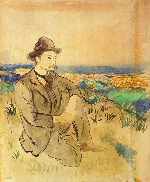 Antonio Carneiro made this painting, Cláudio nos Rochedos, with oil paint on canvas. See how he makes marks? The buttery paint of the rocks is all about process. Up close, you can almost feel the way the brush squished and dragged the yellow and orange pigment. The texture makes the rocks feel solid. And the soft grays of the sky and sea create a melancholy mood, don't you think? I’m drawn to the dark lines carving into the face of the rocks, giving the feeling that they have been scored and weathered by time. Carneiro reminds me of Whistler, both chasing a certain atmospheric, painterly effect. But he is also doing his own thing. Art is always like that, a conversation across generations and perspectives. It's not about fixed meanings but about embracing ambiguity.