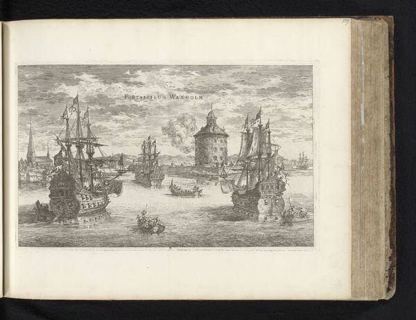 Curator: Ah, look at this beautiful etching, likely created sometime between 1700 and 1710. It's called "Gezicht op het Koninklijk Paleis aan de kust te Napels," or "View of the Royal Palace on the Coast of Naples," currently held in the Rijksmuseum collection. What strikes you first about it? Editor: The immediacy of everyday life. It feels busy with activity – figures strolling, a grand ship docked just offshore, all against this formal backdrop of the Palace. It gives me a peek into a past urban experience, bustling with life, not some sterile historical record. Curator: Precisely! It's fascinating how an anonymous artist, using the reproducible medium of print, has captured both the grandeur of the Bourbon monarchy’s Neapolitan seat and the commerce that supported it. Prints like these served to disseminate images, shaping public perception and creating a visual record available beyond elite circles. Editor: It’s also about the craft itself, isn’t it? Consider the labour that goes into an etching like this—the plate preparation, the controlled biting of the acid, the pulling of the print, all tasks performed by skilled hands. What implications arise regarding workshop practices and the artistic labour associated with creating the very image of power? Curator: Excellent point! These prints facilitated the construction of Naples as a centre of power within a network of distribution, reflecting and perpetuating social hierarchies. The act of creating and selling it shaped Naples itself. Editor: So it becomes both product and promotion of power? Fascinating! Curator: Absolutely. And further still, consider its reception and dissemination; it existed, entered into collections, affected perspectives... all part of that original impetus. Editor: To circle back to the human aspect, there’s also something about the inherent collectivity of a cityscape—depicting vendors, travellers, structures created over decades through vast building efforts... Curator: Indeed, looking at this image reminds us that cities aren't static stages. Thank you. Editor: Thank you, I appreciate it.