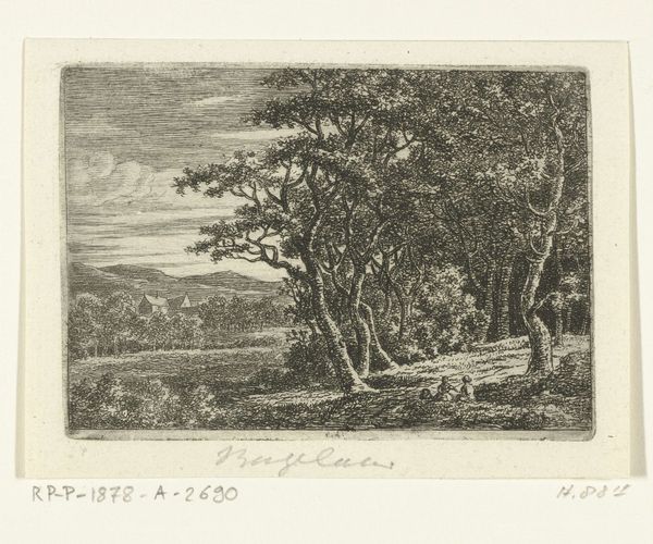 Ernst Willem Jan Bagelaar made this landscape with three deer using etching, a printmaking technique. The magic of etching lies in its alchemical process. A metal plate, likely copper, is coated with a waxy, acid-resistant substance. The artist then draws through this ground with a sharp needle, exposing the metal beneath. When the plate is submerged in acid, the drawn lines are ‘bitten’ into the surface, creating grooves. Ink is then forced into these grooves, the surface wiped clean, and the image transferred to paper under immense pressure in a printing press. Look closely at the intricate network of lines creating depth, texture, and light. The varying densities bring the scene to life, from the foreground foliage to the distant sky. It’s important to remember that printmaking was a key technology in the industrial revolution, allowing images to be reproduced and disseminated widely, connecting artistic creation to broader social and economic forces. Appreciating the labor and skill involved in this etching helps us see beyond the image itself.