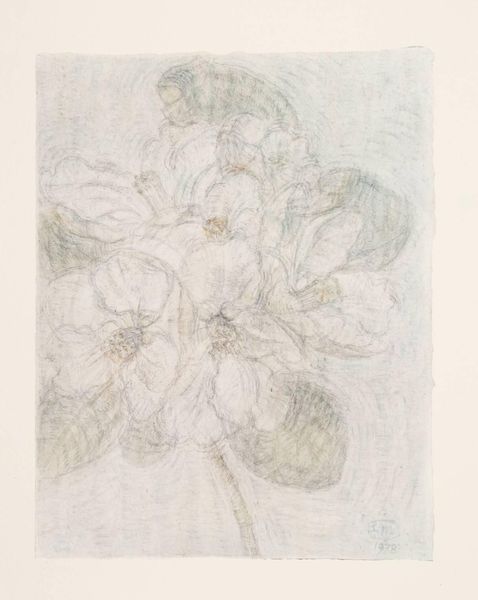 Editor: Here we have Leonard McComb’s *Apple Blossom II*. It feels delicate, almost ephemeral in its rendering. What do you make of the artist’s approach? Curator: It's as if McComb is trying to capture not just the bloom, but its very essence, that fleeting moment of perfection. Notice how the swirling lines create this gentle vibration, like the air around the blossoms is shimmering. It’s a very intimate, almost spiritual observation, don't you think? Editor: I hadn't considered the spiritual angle, but that makes sense given the soft, radiant quality. Thanks! Curator: My pleasure! It is amazing what you discover once you start looking...