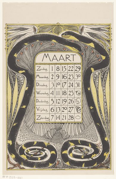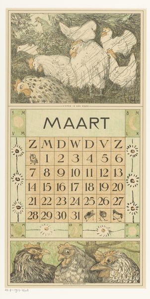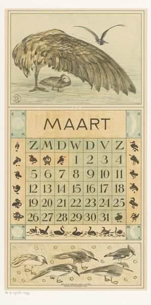 Theo van Hoytema made this calendar page for March 1912 with lithography. I love how he renders the subject with a clear, concise application of line. The image, as a whole, is very flat, in the best possible way. There's something incredibly satisfying about the texture created through lithography here, with its slightly rough, porous surface. The density of the marks varies across the print, creating areas of light and shadow that give the birds their form. Look at the way the artist renders the feathers of the birds—each one is a tiny, deliberate stroke, building up a sense of depth and texture. It feels as if the artist is using drawing to observe, and in doing so he has made the invisible visible. It reminds me a little of the work of Utagawa Hiroshige. Both artists share a similar appreciation for nature and a knack for capturing fleeting moments in time. Ultimately, this print reminds us that art is an ongoing conversation.
