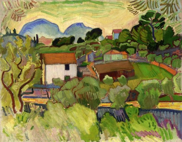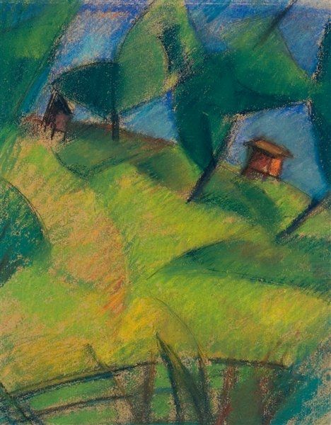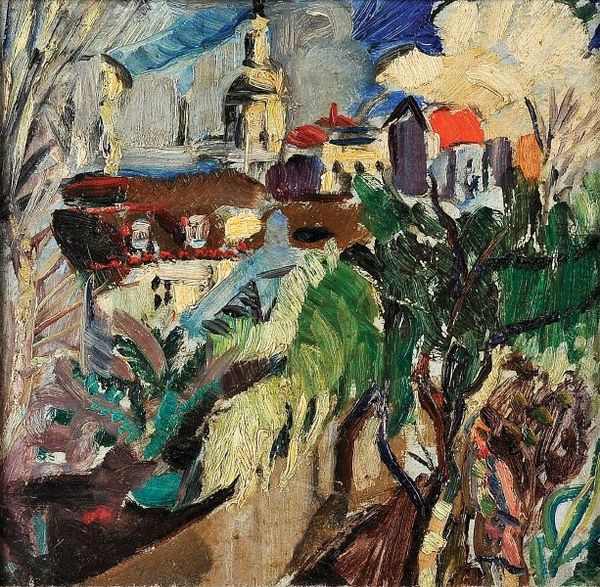 Bela Czobel made this oil painting of Grossrouvre in 1925 with bold, expressive strokes. I love the way he builds up the scene. It's all about the process, you know? The brushstrokes are so visible, like he's inviting you to see how the painting was made, layer by layer. Notice the thick texture, especially in the greens of the trees – it's almost sculptural! Then there's that road, painted in these earthy oranges and reds, pulling you right into the scene. It's not just a road; it's a pathway into the painting itself, inviting you to wander and explore. Czobel's work reminds me of the Fauvist painters, like Vlaminck, who weren't afraid to use color in unconventional ways. Art is this ongoing conversation, each artist responding to what came before, adding their own voice to the mix. And that's what makes it so exciting!