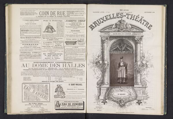This photographic portrait of Marie Harlem, by Albert Delabarre, was included in the Brussels-Theatre magazine. We can consider it as a fascinating intersection of celebrity culture, theatrical performance, and print media in the late 19th century. The image presents Harlem in costume for ‘La Petite Mariée,’ or ‘The Little Bride’. It is surrounded by an elaborate frame, and placed within an issue containing advertisements of the time. Made in Belgium, this portrait reflects the rising popularity of theatrical productions and the associated culture of fame. It also mirrors the growing commercialization of the press, where advertisements and entertainment were closely intertwined. To understand this image more fully, one might delve into the archives of Brussels’ theatrical history, examining playbills, reviews, and other ephemera. The ways in which media outlets like the Brussels-Theatre magazine helped to shape perceptions of celebrity, gender, and social status can be further uncovered. We can also examine how institutions shape both artistic production, and its reception by the public.