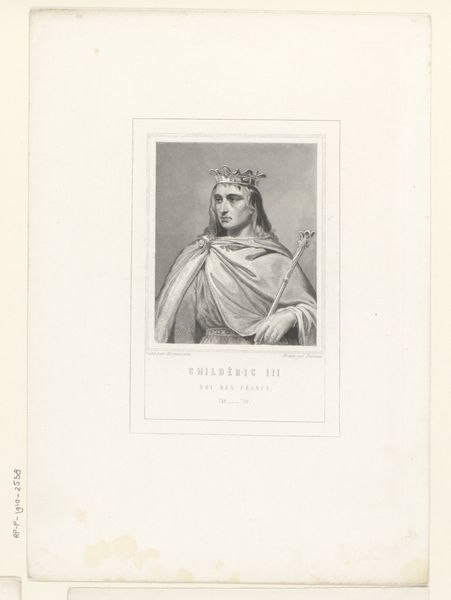 Curator: This is a print portraying King Charles II of England, created sometime between 1818 and 1873 by Charles-Amédée Colin. It's rendered as an engraving. What strikes you initially about this image? Editor: He looks...tired. Power is such a drag, isn’t it? The monochrome actually emphasizes the weariness, like a faded photograph from a long life. I can't help but notice the repetitive marks of the engraving forming the image. Curator: Yes, it does carry a sense of melancholy. The artist has skillfully used line work to create shading and depth. Considering its a print, what does it tell us about the economics of art making at the time? Editor: Precisely. Engravings democratized image production and distribution in ways painting couldn't. We are talking cheaper, repeatable, commodifiable, fit for mass consumption, but also a particular skilled form of labour Curator: True, prints played a huge role in disseminating imagery and ideas across society, but beyond the mechanical process, Romanticism is at play. I see elements of realism in capturing Charles' features. Editor: For sure, it's that interplay of mass production and individual authorship. Romanticism had a complicated relationship with industrial processes— often critiquing them whilst being reproduced as commodities within it. So the line becomes fascinating, its both literal, descriptive as well as functional in mass-production terms. Curator: Exactly. I think that tension adds depth. The print prompts us to think not only about royal portraiture, but the infrastructure that gave this image its reach, too. Editor: Agreed. This simple monochrome carries a multitude of perspectives, of craft, politics, and dissemination. Curator: It definitely does make us question who and how we consume images. Editor: I come away feeling a renewed appreciation for the process of art and it's reach beyond the purely aesthetic.