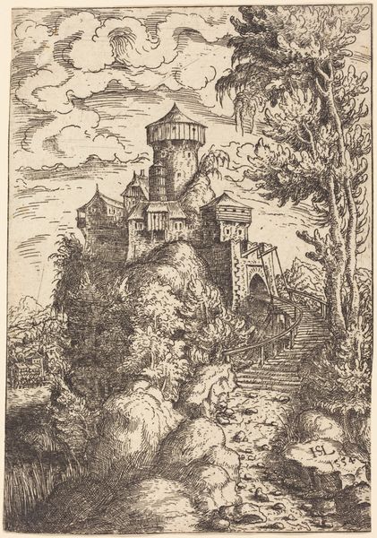 Christian Wilhelm Ernst Dietrich created this landscape with ruins using etching. Notice how the composition guides the eye upwards. Beginning with the resting shepherd and his flock at the base, a broken bridge then leads to a towering, ruined structure. Dietrich’s use of line is particularly striking. The dense, chaotic strokes in the foreground gradually transition to finer, more controlled lines, giving the illusion of depth and distance. This technique not only creates a sense of space but also hints at a deeper commentary on time and decay. The ruins, rendered with meticulous detail, are not just architectural remnants; they are signs of past grandeur, symbols that invite reflection on the transience of human endeavor. The sky, filled with swirling lines, adds to the sense of impermanence. It suggests that the natural world endures, outlasting human creations. The landscape isn't merely a visual scene, but a carefully constructed representation of historical and existential themes.