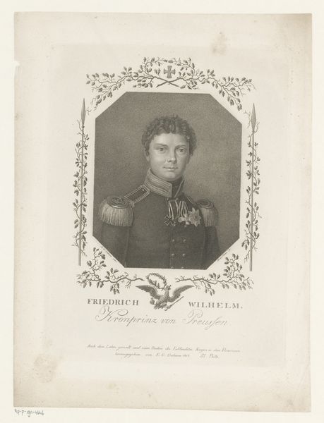 This is Willem van Senus's portrait of Willem II, King of the Netherlands. In it, the king is encircled by symbols of power. The crown, prominently displayed, is a potent symbol of sovereignty, authority, and divine right. Since ancient times, crowns have signified the ruler's elevated status. Here, it also reflects the weight of history and tradition. Note how the oval frame resembles ancient Roman portraiture; we see echoes of the past, the desire to connect with a lineage of power and prestige. Consider the rays emanating from behind the king, reminiscent of a halo. This association with divinity elevates Willem II, imbuing him with an almost spiritual aura, a visual strategy to reinforce his authority. These aren't just artistic choices; they are echoes of cultural memory, resurfacing to lend weight to the figure portrayed, engaging our subconscious understanding of power and authority.