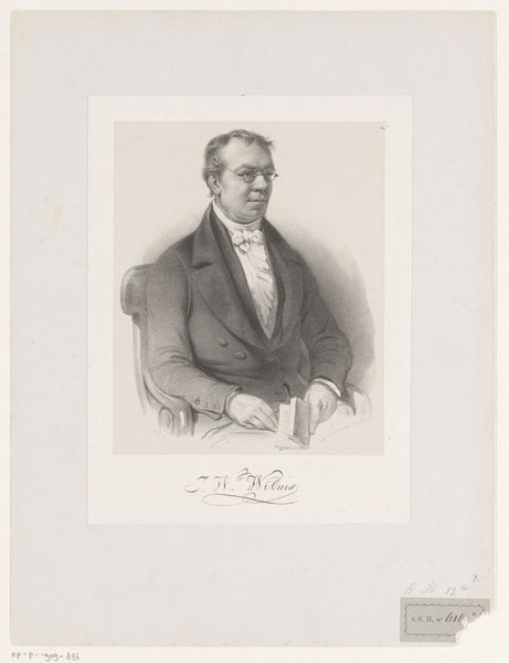 Editor: Here we have J.B. Clermans' 1835 pencil drawing, "Portret van Johann Wilhelm Wilms". It feels like such an intimate glimpse into the past. What catches your eye in this work? Curator: The most striking aspect is undoubtedly the artist's masterful handling of line. Observe the variation in pressure, creating a subtle interplay of light and shadow that models the subject's features with remarkable precision. Notice also the textural contrast between the sharply defined facial details and the more loosely rendered clothing. How do you think this contrast affects the overall composition? Editor: I guess it keeps your focus on Wilms' face, since that has so much detail. Curator: Precisely. Furthermore, consider the deliberate asymmetry of the composition. The subject is slightly offset, creating a dynamic tension within the frame. One might even consider the signature not merely as identification but as an integral compositional element, grounding the figure. The way the values shift is masterful for a single tone work. Editor: I hadn’t considered the signature like that. It really balances the portrait, almost like a visual anchor. Does the subject's clothing say anything about his role in society, or about how Clermans viewed him? Curator: Perhaps. However, let us primarily consider what the artist is *showing* us. The emphasis is on the face. We might discuss attire but ultimately those elements remain subservient to the overall artistic treatment. We can't assume intent without supporting visual evidence. Editor: That makes a lot of sense. I definitely appreciate how much I can learn just by focusing on what's visible in the work. Curator: Indeed. Through a close examination of its formal elements, we gain a deeper understanding of the artist's skill and intention. Editor: I see this drawing with new eyes! Curator: And hopefully, new questions.