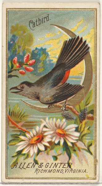 Allen & Ginter Cigarettes made this small chromolithograph card, "Robin," as part of its Birds of America series, which came free inside cigarette packs. These cards reflect a late 19th-century fascination with natural history, fuelled by growing industrialisation and urbanisation. What was the relationship between the expansion of consumer culture and the growth of leisure activities such as bird watching, and how did those relate to the destruction of natural habitats? The robin in the image appears perched on a branch with foliage and flowers, printed in vivid colors to attract consumers. The company name and location, Richmond, Virginia, are prominently displayed, reflecting the economic power of the tobacco industry in the post-Civil War South. Historians can use sources such as business records, advertisements, and popular culture ephemera to explore these questions and gain a richer understanding of art's complex relationship to commerce and society.