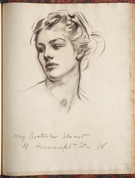 Curator: Before us, we have "Study of Head" by Gerald Leslie Brockhurst, a striking pencil drawing. The piece exemplifies Brockhurst's technical skill within the academic tradition. What strikes you most when you first encounter this image? Editor: The cool reserve, I think. It is an image that, technically accomplished as it is, still feels emotionally quite remote and very controlled. It begs the question, who was this woman, and how does Brockhurst's presentation of her speak to ideals of beauty or status in his time? Curator: The precision definitely stands out. Brockhurst was known for his meticulous technique, which he likely honed during his early training at the Royal Academy Schools. His portraits often walk a fine line between objective representation and idealized form. It will be interesting to discover who the model was. Editor: Absolutely. Knowing something of the sitter would bring this drawing into much sharper focus. The details she does reveal are fascinating: her elegant string necklace, the subtle blush on her cheeks. These suggest a degree of privilege. Yet the drawing feels somehow unfinished, which creates an intriguing tension. Why present such a refined subject in an incomplete form? Curator: The "unfinished" quality, as you pointed out, makes me think of the work as a study, allowing for an investigation into Brockhurst's process and what exactly he wanted to accomplish with his drawings. Perhaps the incomplete background directs all of the viewer’s attention to her face, making this more about capturing the ideal beauty in facial features than presenting a complete, socially contextualized portrait. It certainly resonates with his tendency towards idealized representations of women. Editor: That tension you point to – between the real and the ideal – is so interesting here, precisely because, as a drawing, it implies both a kind of intimacy between artist and sitter, and also, in its lack of a traditional setting, a potential universality. It makes you wonder what was expected from female subjects in the art world and whether Brockhurst was challenging those expectations by allowing such clear "process" to remain visible. Curator: This is precisely where examining the historical context becomes valuable. Brockhurst came into prominence during an era grappling with evolving notions of femininity, especially with women becoming increasingly active outside the home. "Study of Head," in this light, potentially contributes to an ongoing visual dialogue, depicting a sophisticated, self-possessed, modern woman who seems caught between tradition and modernity. Editor: It gives us a moment to reflect on the expectations placed on women – both within art and without – and the powerful ways that artists both reflect and subvert those expectations. And for that, Brockhurst's piece really lingers in the mind. Curator: It does invite one to keep considering, questioning what exactly is the statement he attempts to deliver, which in turn prompts one to re-examine and perhaps reinterpret how we are defining portraiture to this very day.