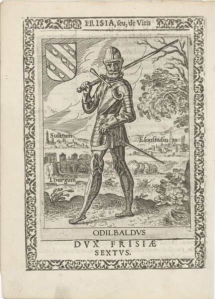Pieter Feddes van Harlingen made this print, Ubbo, Fourth Duke of the Frisians, in the seventeenth century. It's important to remember that the seventeenth century was a time of emerging national identities and intense political maneuvering across Europe. In this print, Ubbo stands in armor, with a coat of arms and scenes of Frisia in the background, creating a very specific image of leadership. Consider how Ubbo's portrayal—as a strong, authoritative figure—intersects with the historical role of dukes in shaping regional identities. Think about how prints like these were not just images, but tools in constructing historical narratives and reinforcing power structures. They offered very specific representations of masculinity, class, and regional pride. This image prompts us to reflect on how historical figures are curated, remembered, and visualized—raising complex questions about identity, power, and the stories we tell ourselves about the past.