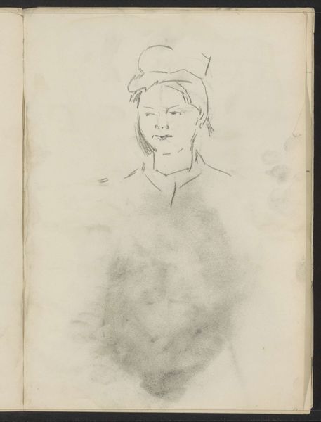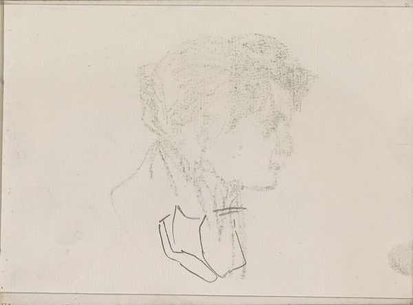 Editor: This is "Head of a Young Man with a Hat," a pencil drawing by Léopold Flameng, created around 1859. There’s something delicate, almost ephemeral, about the sketch. I’m struck by how little detail is actually there. What do you make of it? Curator: Well, let’s think about the means of production, what the materiality of the piece suggests. It is a pencil drawing, placing it firmly in the realm of the preparatory study, something not necessarily meant for display but for workshop practice. Considering the artist's career as a printmaker, it is probable this pencil sketch might be a preparatory work for a print. It speaks of labor, of process, rather than aiming at the traditional values we find in, say, an oil portrait hanging in a salon. Editor: That's a great point, seeing it as part of a larger production process. It challenges the idea of the artist as solely a creator of "high art," but someone engaging in the day-to-day craft of artmaking. The use of pencil -- such a commonplace, accessible material -- further emphasizes that point. Do you think the social context of 19th-century academic art influences the choice of medium? Curator: Absolutely. Academic art stressed rigorous training. The accessibility of pencil meant it could be used for all levels, from initial sketches to more formal studies, crucial for developing technical skills. The social and economic implications are right there. Students of varying means could engage with drawing in the same fundamental way. We are seeing the means to an end. Editor: That's fascinating, linking the materiality of the pencil to the broader context of artistic labor and accessibility. So, the value lies not just in the image itself, but in understanding how it was made and for what purpose within that academic structure? Curator: Precisely. This sketch embodies a material connection to a specific time and place, underscoring art-making not as a magical act, but as skilled, tangible labor embedded in social realities. Editor: Thanks, that’s shifted my perspective completely. It's much more than just a portrait; it's a document of artistic production.