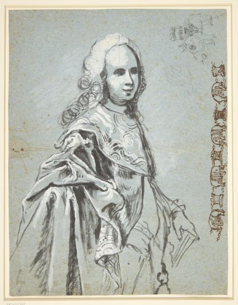 Editor: This is an x-radiograph of "Peter Thacher (?)", by Peter Pelham. The ghostly figure is compelling. What do you see in this piece from a formalist perspective? Curator: The interplay of light and shadow is quite striking. Notice how the density variations reveal underlying structures, almost abstracting the portrait. The texture, a network of fine lines, adds another layer to the composition. Editor: So the physical structure of the artwork itself becomes a key element of its meaning? Curator: Precisely. The x-ray reveals the artist's process, the application of paint, and the canvas beneath. It's about form, texture, and how they interact to create a unique visual experience. Editor: I see it now! Thanks for pointing out those visual elements. Curator: A pleasure. It's fascinating how a scientific tool can reveal the artistic essence.