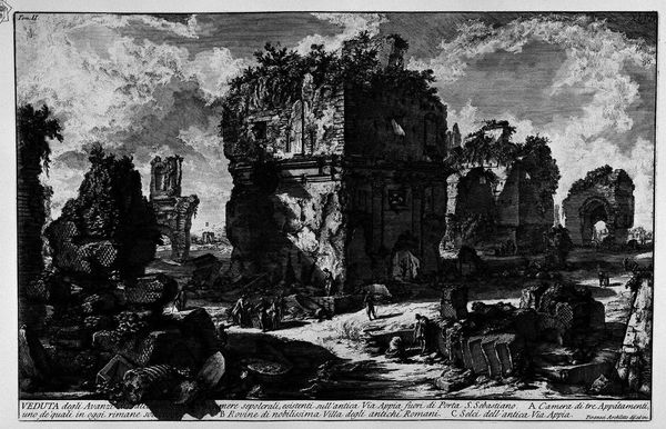 Giovanni Battista Piranesi created 'Vedute di Roma' using etching, a printmaking process that democratized image-making in the 18th century. Piranesi's technique involved coating a metal plate with wax, then drawing through it with a sharp needle to expose the metal. Immersing the plate in acid then eats away at the exposed lines, creating grooves that hold ink. The plate is then pressed onto paper, transferring the image. The stark contrast of blacks and whites, achieved through controlled biting and layering of lines, creates depth and drama, emphasizing the weight and texture of the ancient ruins. Piranesi wasn't just documenting Rome; he was also participating in a burgeoning market for picturesque views, catering to the Grand Tourists who sought souvenirs of their travels. The material conditions of printmaking, like the labor-intensive process of etching and printing, are critical to understanding the social context of Piranesi's work. He skillfully combined artistry with entrepreneurial savvy, blurring the lines between fine art and commercial enterprise.