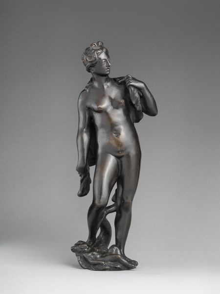 Editor: So, this is "The Age of Bronze" by Auguste Rodin, conceived between 1876 and 1911. It's a bronze sculpture, and I have to say, the pose is quite striking. There's something almost…melancholy about it. What do you see in this piece, its historical symbols? Curator: This piece pulsates with symbolic weight. At first glance, its original title was 'The Vanquished', imbuing this figure with a heavy layer of defeat, both physical and perhaps spiritual. Consider how Rodin deliberately echoed classical forms, yet instilled them with such raw emotion, such visible struggle. That's a potent combination. Notice the extended arm: what historical memory might be attached? Editor: You mention raw emotion. To me, it feels like an awakening. Maybe an Adam figure expelled from Eden? What's the meaning of this ambiguous imagery? Curator: Precisely! This piece triggered controversy because of its realism; some assumed Rodin had cast it directly from a model. The gesture – reaching, questioning – became emblematic of humanity's transition, its 'bronze age' perhaps implying both technological advancement and a fall from grace. And that stance; slightly off-kilter…does that suggest other iconic memories to you? Editor: Now that you point it out, I see what you mean, I missed so many details when I initially viewed it! Curator: These ambiguous figures ask a central question – the price of our achievements? We're caught between progress and what is sacrificed in its wake. We can think about war. We are left wondering the effect of constant conflict on generations. Editor: Thank you! This artwork holds such depth in history and technique. The figure’s tension suddenly makes more sense to me, given the multiple cultural contexts it's drawn from.