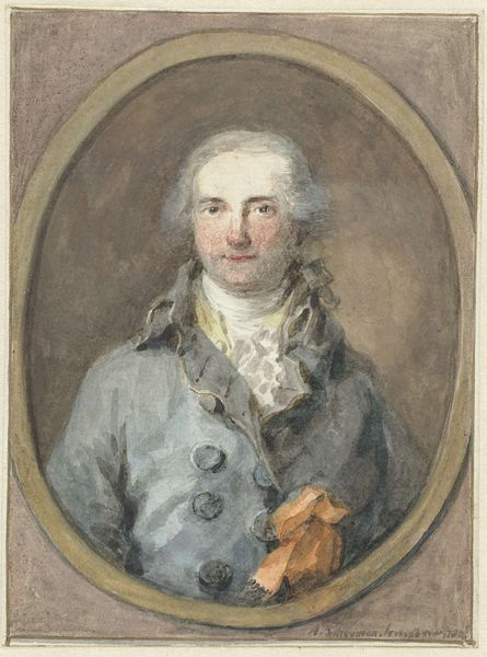 Curator: Standing before us, we have Jean-Baptiste Perronneau's "Portrait of Frederik Hansen de Liliendal, Danish Consul at Bordeaux," created between 1767 and 1769. Editor: He seems like a man comfortable in his position. Almost placid, you might say. The colors, that subdued red and grey, reinforce a feeling of calm authority. Curator: Perronneau was working in a moment rife with social changes, wouldn't you agree? We see here the display of status via this man’s official position, linking directly into networks of power and early capitalist structures of 18th-century Europe. What can this say about how identity in this moment was being actively crafted to legitimize power dynamics in shifting political spheres? Editor: Indeed. The details tell their own story, it seems, highlighting a society increasingly invested in external symbols of authority. I imagine Perronneau, positioning himself in the art world, aimed at the cultural tastes of the era to attract clientele seeking legitimization by those new systems. We can almost taste that sweet interplay between the old world and new markets in the portrait. Curator: This gets to what portraiture has long represented: it wasn't only the depiction of an individual. It's about access and power. For marginalized communities this very kind of representation has often been unavailable, but what can we gather from Liliendal's role within Danish power systems of that moment to better grasp who it empowers even still today. Editor: That’s compelling to consider. If one sees this work outside any present power dynamics and just takes its aesthetics and subject in light of 18th-century artistic ideals, then what this reveals regarding those political circumstances comes as a vital lesson to us centuries later. We can, therefore, acknowledge a dialogue, in which Frederik Liliendal’s image speaks with critical impact concerning power itself and how he has been rendered by Jean-Baptiste Perronneau. Curator: Yes, analyzing how class and economics influence even artistic style makes such an examination valuable. Understanding historical biases helps us move toward equity today. Editor: Absolutely. Every image contains coded narratives, which begs us to reconsider all representation around us in order to find something beautiful.