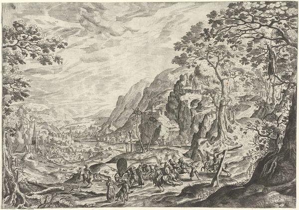 Dancker Danckerts created this Italian mountain landscape with shepherd and shepherdess by a riverbank sometime in the mid-17th century. This idyllic scene offers a glimpse into the romanticized views that Northerners held of Italy. While Danckerts never actually traveled to Italy, he was clearly influenced by artists who had, absorbing a vision of Italy that was less about reality and more about longing. The figures of the shepherd and shepherdess are archetypal, their presence lending a pastoral, almost biblical quality to the scene. Note the woman carrying the heavy load on her head. This engraving reflects the social structures of the time, where labor and gender roles were clearly defined. It offers a softened, picturesque take on the lives of ordinary people, carefully avoiding any depiction of social tension. In this landscape, the human figures are dwarfed by the natural world, suggesting a yearning to return to a simpler, pre-industrial existence. It’s this tension, between the real and the ideal, that makes Danckerts' work so compelling.