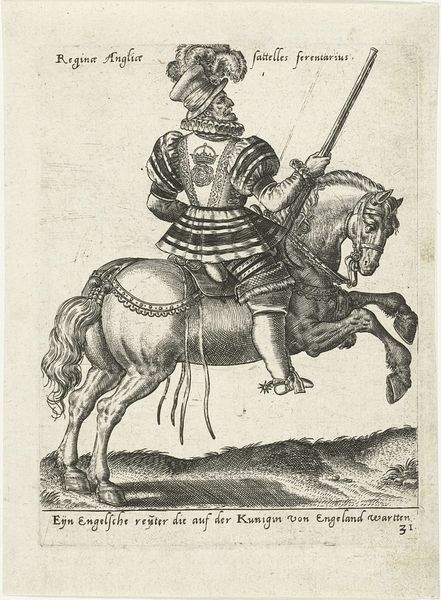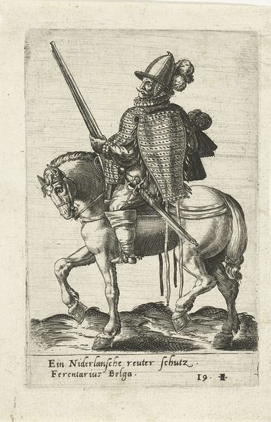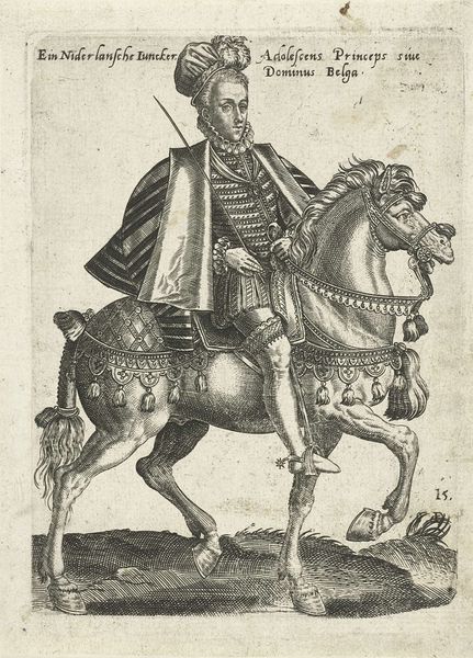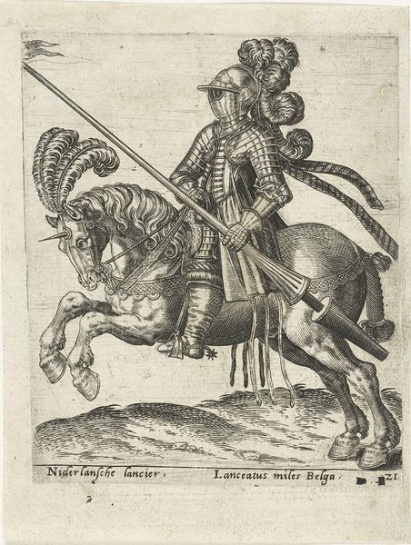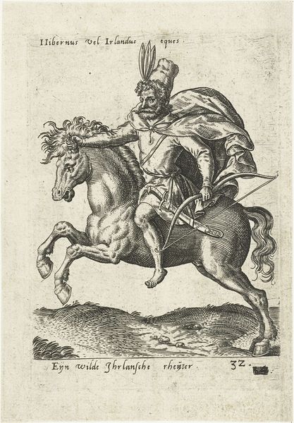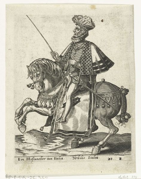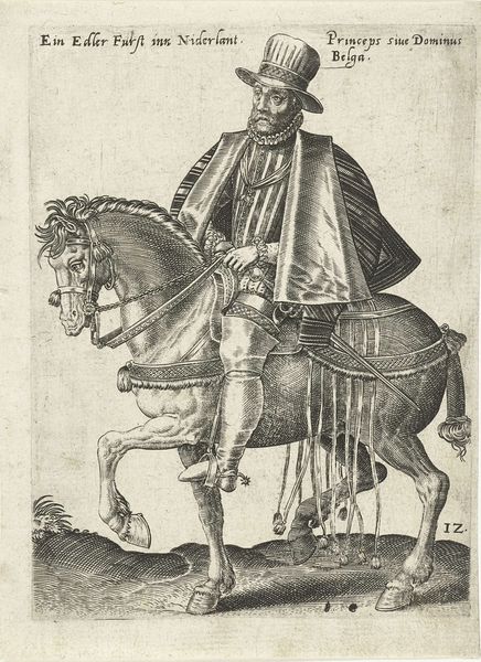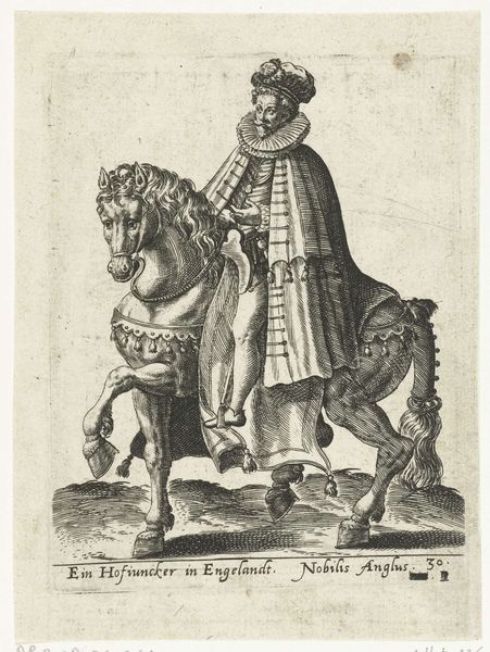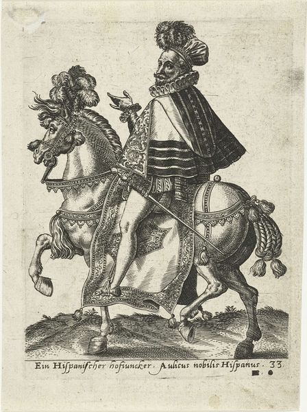 This engraving, created by Abraham de Bruyn, depicts two French noblemen sharing a horse. Observe the unusual posture, the unsettling intimacy of the riders. In the 16th century, the horse was a symbol of status, virility, and control, yet here, this dominance is subverted as two figures awkwardly occupy the space typically reserved for one. Consider the recurrence of doubled figures in mythology and art: the Gemini twins, or the two-headed Janus. This doubling suggests a duality, a mirroring, or perhaps an internal conflict made visible. The motif can be traced back to ancient Roman art, often symbolizing transitional periods. The shared mount could be seen as an allegory for cooperation or perhaps a commentary on the societal bonds and constraints placed upon the nobility. It evokes a sense of shared identity or purpose, resonating on a deep, subconscious level, engaging viewers with its implicit psychological tension. The image speaks to the cyclical nature of symbols and the way they evolve, resurfacing in new forms to reflect changing cultural landscapes.