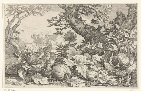 Carl Wilhelm Kolbe created this small etching of a burdock plant and delicate tufts of grass. The plant's voluminous leaves dominate our view. The texture is so palpable, you can almost feel the roughness of the leaves and the fineness of the grass. Kolbe masterfully uses line and form, creating a dense tapestry of etched marks. The burdock leaves, with their intricate veins and ruffled edges, are meticulously rendered. Light and shadow play across the surface, giving depth and dimension to the plant. The composition suggests a deeper philosophical engagement with nature. The level of detail can be seen as a reflection of Enlightenment-era scientific observation. Each line contributes to the overall structure. The result is a work that invites us to contemplate the beauty and complexity of the natural world, captured through the precise and deliberate art of etching.