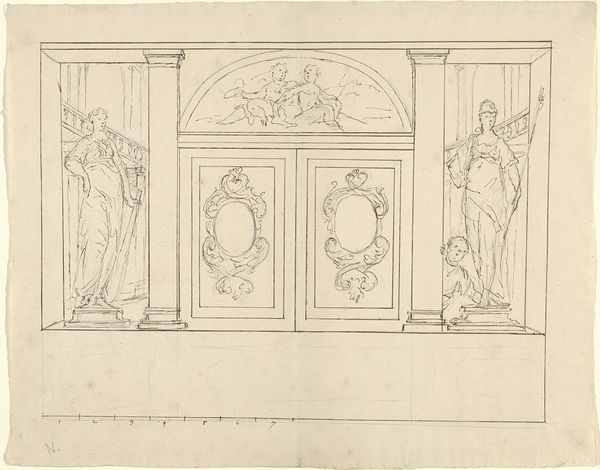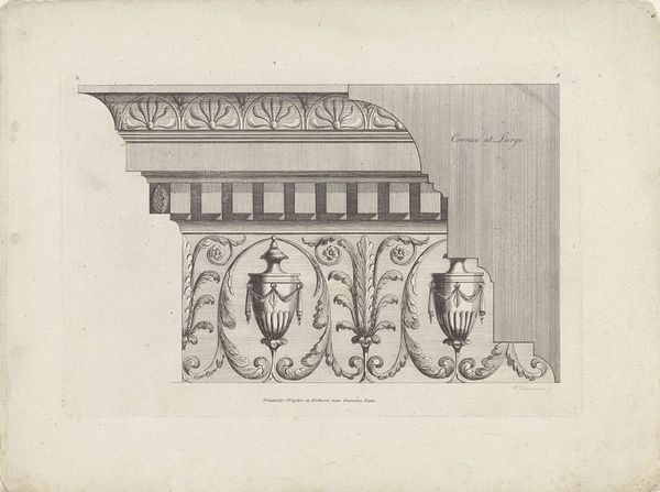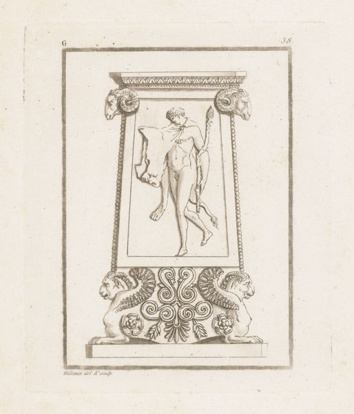 This drawing of a Roman capital by Karl Ballenberger presents us with a fascinating blend of classical motifs and symbolic imagery. The acanthus leaves at the base, a hallmark of classical architecture, evoke notions of growth, life, and perhaps even immortality. But it's the winged figures that truly capture our attention. These beings remind us of similar figures that bridge the earthly and divine realms in ancient mythologies. Think of the winged deities of Mesopotamia, or the Greek Nike. Here, however, they adorn a Roman capital, suggesting a fusion of cultural and religious ideas. The grotesque mask at the center, with its primal features, stands in stark contrast to the serene faces of the other figures. This jarring juxtaposition might evoke a sense of the uncanny, reminding us of the darker, more chaotic aspects of the human psyche. It's as if the artist is tapping into a collective memory, stirring up emotions and associations that lie deep within our subconscious. These motifs resonate across time and space. The capital is not merely a decorative element but a potent carrier of cultural memory, revealing the continuous, cyclical progression of symbols.