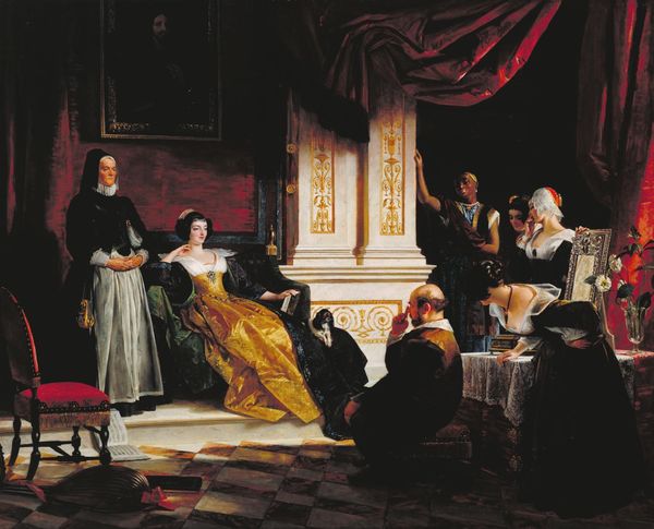 Jean-Léon Gérôme’s painting presents us with a formal tableau, a moment of imperial reception rendered in oil on canvas. The eye is immediately drawn to the pale figures of Napoleon III, Eugenie, and their son, positioned centrally against a backdrop of muted tones. The composition is rigorously structured, emphasizing hierarchy and order. The painting's semiotic system reveals much about the dynamics of power and representation. The subjects' costumes, the opulent throne, and the architectural details all function as signs of imperial authority. Yet, the subdued palette and the somewhat rigid poses suggest a tension, a performance of power rather than its natural expression. The gaze of each figure directs the viewer through a narrative of social relations. Consider the gaze and arrangement. These elements create a field of visual signs that invite us to question the nature of representation itself. In this play of gazes and formal arrangements, Gérôme's painting opens up to a broader cultural discourse, challenging us to reflect on the meanings we assign to images and the power structures they uphold.