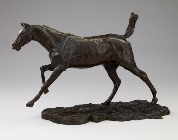 Edgar Degas created this bronze sculpture, "Study of a Mustang," sometime during his career as a means of exploring movement and form. Degas was a privileged member of the French upper class, and he found himself fascinated by the spectacle of horse racing. This sculpture of a mustang, a free-roaming horse of the American West, reflects an interest in capturing raw, untamed energy. During the 19th century, the mustang symbolized the American frontier. But for Degas, the horse was probably more of an exercise in representing motion than a statement about the West. One can imagine Degas thinking of the animal as he watched the ballet dancers he liked to paint. As he famously said, "Art is not what you see, but what you make others see." Ultimately, "Study of a Mustang" embodies Degas’s attempt to grasp and convey the fleeting beauty and power of the natural world, distilled through the lens of his own experiences and the cultural narratives of his time.