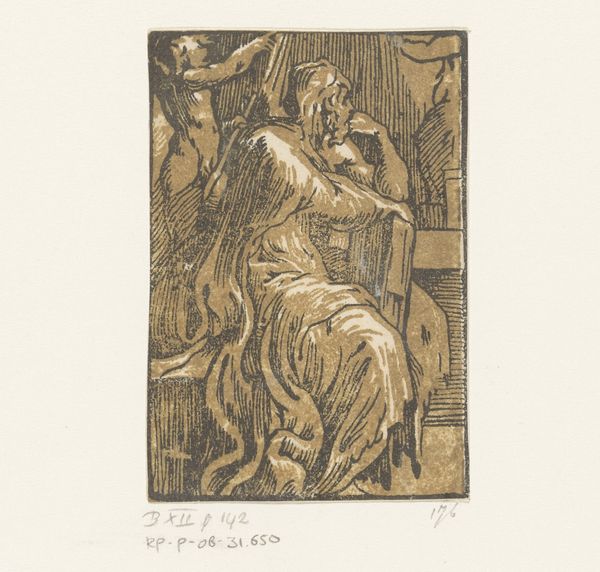 Around 1520-1550, Antonio da Trento captured 'Cholerisch Temperament' in chiaroscuro woodcut, a striking play of light and dark across a small, textured surface. The composition, dominated by an allegorical figure, showcases a dynamic tension between the chaotic background and the posed figure in the foreground. The choleric figure, caught mid-motion, holds a sword high, symbolizing aggression. This is juxtaposed against the background of swirling clouds. The figure’s pose and expression, coupled with the almost violent thrust of the sword, embodies choler, an imbalance within the old doctrine of the four humors. Da Trento uses the chiaroscuro technique not just to depict but to embody the idea of choler. Note how light and shadow define not just form but also emotion. This print is not just an image; it's a philosophical statement rendered in line and tone, inviting us to decode its visual rhetoric.