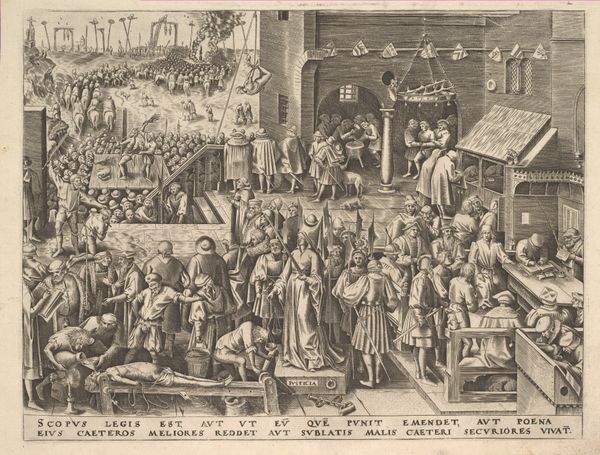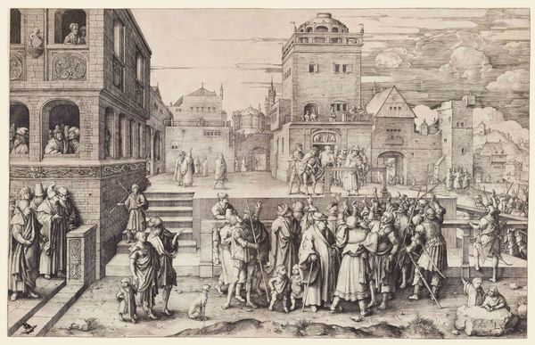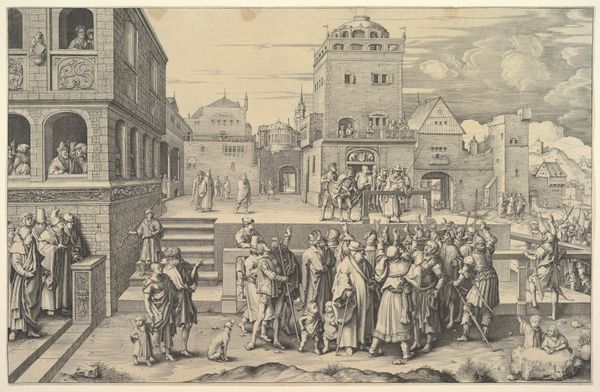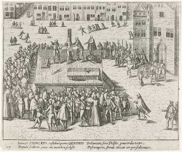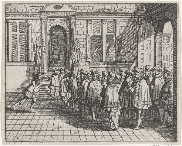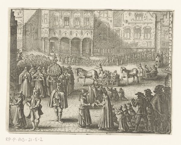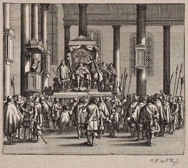 This anonymous etching captures the Oath on the Grote Markt in 1582, teeming with symbols of power and civic duty. Note the raised hands of the figures on the stage—a gesture reaching back to ancient Roman oath-taking ceremonies, signifying allegiance and unity. Observe the heraldic symbols adorning the building, each animal a motif laden with historical significance, embodying the virtues and identity of the city and its ruling families. These symbols, like the eagle and lion, have ancient roots, evoking strength and nobility. They echo through time, resurfacing in emblems of authority across various cultures. The act of oath-taking itself, witnessed by the masses, represents a collective desire for order and justice. Such public displays tap into deep-seated psychological needs for security and belonging, manifesting as a powerful force binding communities together. These symbols continue to resonate, perpetually evolving and adapting to new cultural landscapes.