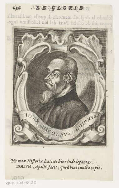 Editor: Here we have "Portret van Rijckaert Aertsz." created in 1764 by Jan l' Admiral, an engraving on paper. It's a compelling Baroque portrait…almost a portrait within a portrait, if you will. I'm curious – what narrative layers do you perceive in this print? Curator: It strikes me as a wonderfully playful trompe l’oeil. The portrait of Rijckaert Aertsz is rendered with an almost severe realism, framed by what seems to be an ornate, three-dimensional border. And then! To the left, we see another artist painting… perhaps Aertsz himself? And a little squirrel nibbling on grapes! Do you find that amusing? Editor: I do! The squirrel throws me off a little; it feels a bit surreal. Is there a reason for its inclusion? Curator: Well, it’s hard to say for sure without knowing the full context of the commission, but squirrels have been known to symbolize industry or even the senses, but, personally, I prefer to imagine it adds a touch of the artist’s quirky spirit, as if the work’s winkingly whispering: ‘don’t take yourself too seriously, dear viewer.' Perhaps it’s a wink to Aertsz's life as an artist himself? What do you think? Editor: I didn't think of it that way. That makes a lot of sense; the Baroque style had a tendency to have hidden meanings, didn't it? Now that I consider it from that angle, the portrait does seem a little less severe. Thanks for sharing that perspective! Curator: Anytime! It is a work brimming with clever self-referentiality, it makes you think about art, really *see* the art, and its creator’s hand in crafting the image. Editor: I agree; I’ll never look at a portrait the same way again.