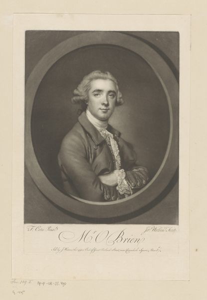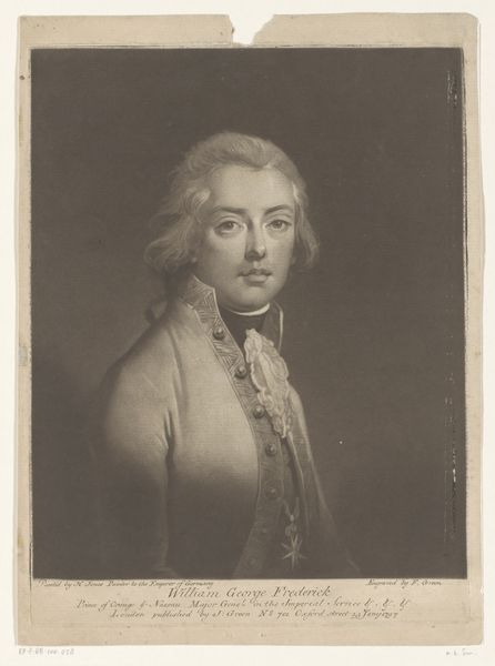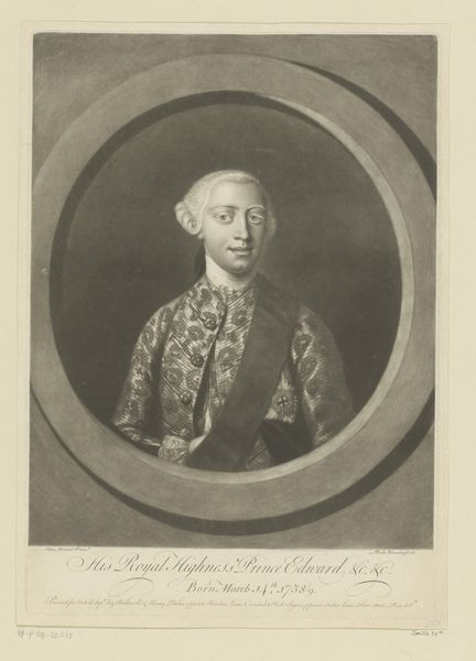 Edward Fisher produced this portrait of Christian VII, King of Denmark, using mezzotint. As an art historian, I’m drawn to the role images play in shaping public perception, particularly of those in power. This print offers a glimpse into the visual codes used to convey authority in 18th-century Denmark. Consider the formal presentation: the oval frame, the inscription declaring Christian’s title, his powdered wig, and the ornate detailing of his attire. These elements were carefully chosen to project an image of power and legitimacy. But beyond the surface, we can ask: what social conditions enabled the production and dissemination of such images? Who was the intended audience, and what message were they meant to receive? Understanding the institutional history of portraiture, the economics of printmaking, and the political climate of the time can help us unpack the complex layers of meaning embedded in this image. By consulting period documents, such as royal decrees, and analyzing the print's distribution networks, we can gain a richer understanding of the public role this portrait was intended to play.